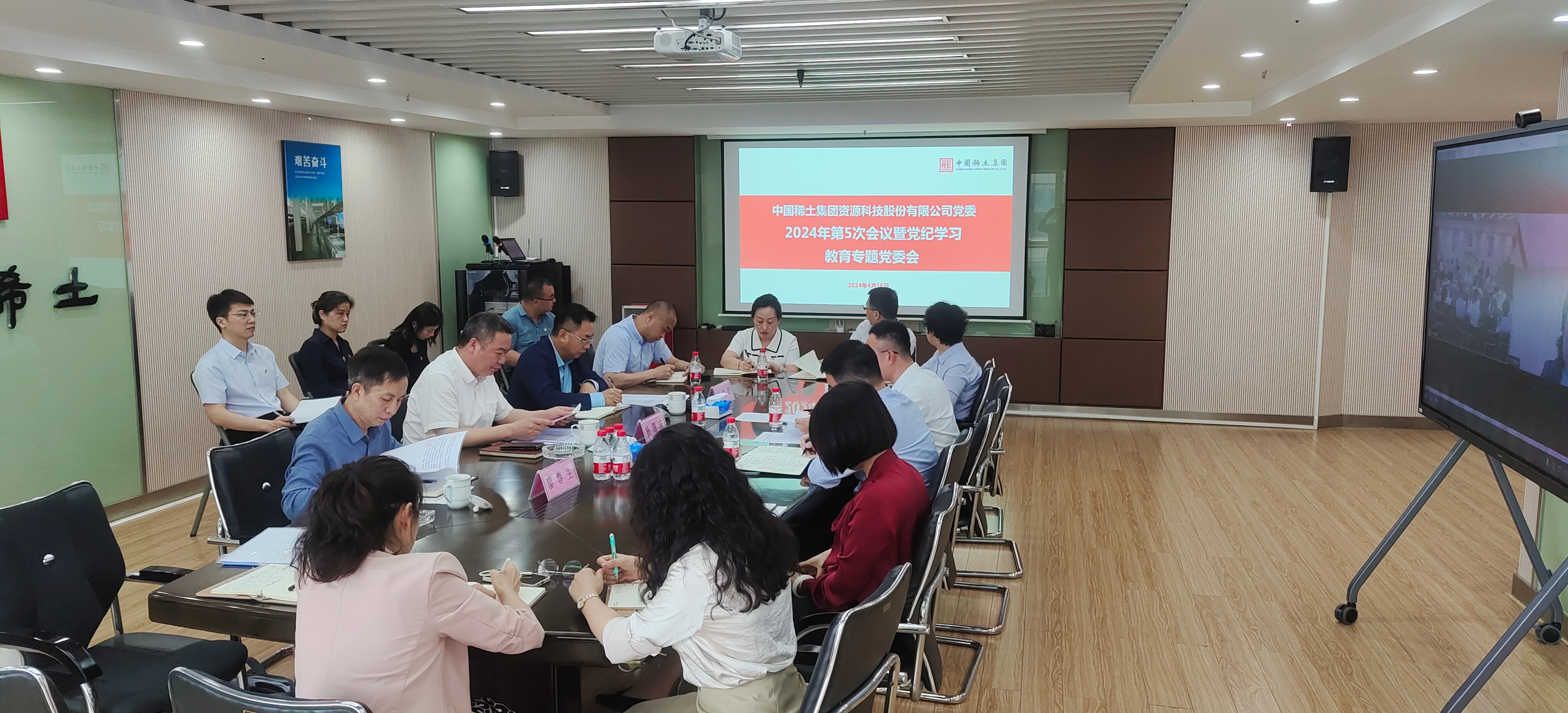 ? ? ? ?近日,中國稀土集團資源科技股份有限公司黨委召開黨紀學習教育專題會議,傳達學習習近平總書記關于黨紀學習教育的重要講話和重要指示精神,學習貫徹中央黨的建設工作領導小組會議部署要求,認真落實集團公司黨委黨紀學習教育專題會議精神,研究審定《中國稀土集團資源科技股份有限公司黨委關于開展黨紀學習教育的工作方案》,部署開展公司黨委黨紀學習教育工作。公司黨委書記、董事長楊國安主持會議并講話,黨委副書記、總經理閆繩健及其他領導班子出席會議。